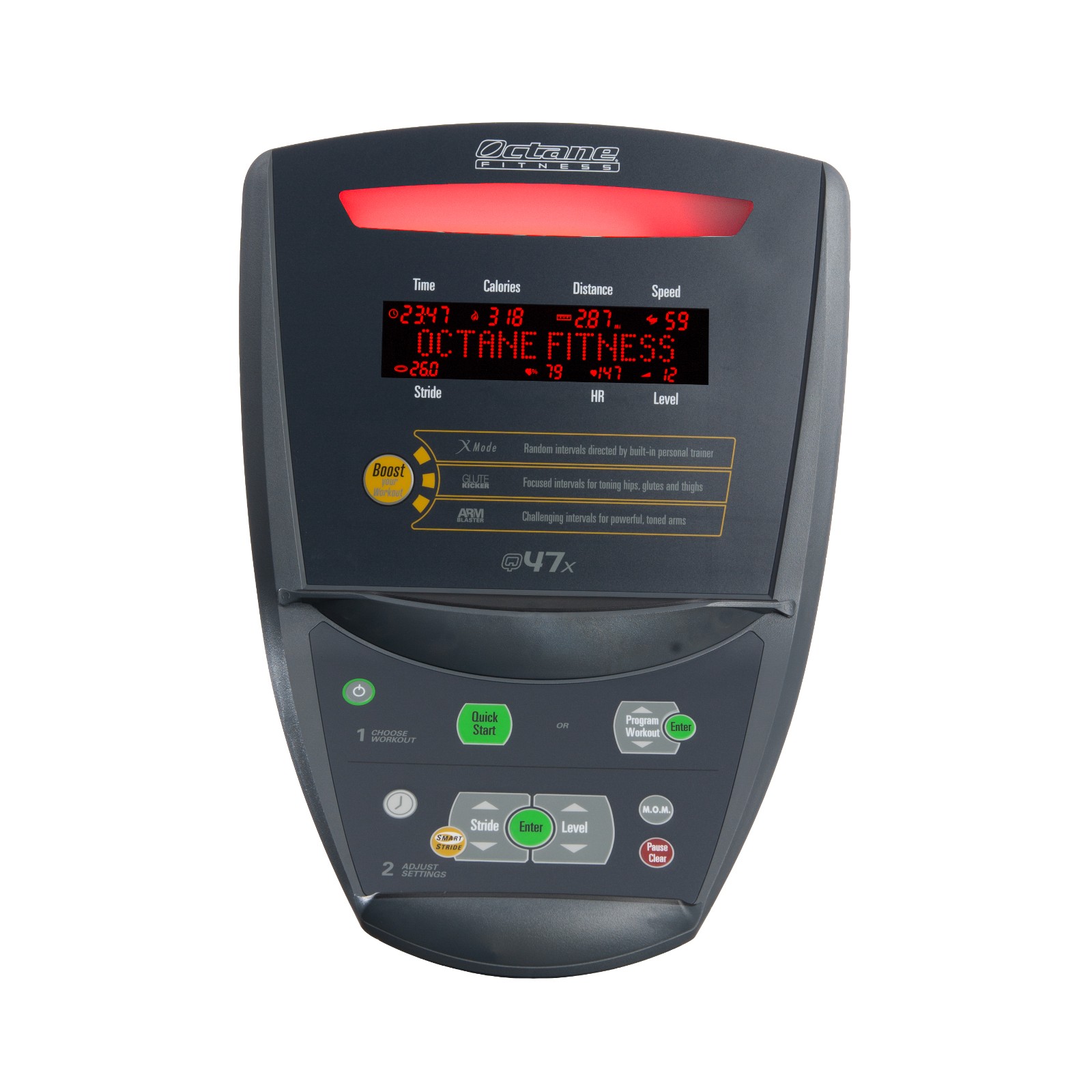 L'inedito Octane Crosstrainer Q47xi utilizza la tecnica sperimentata dei suoi predecessori e guadagna punti attraverso le nuove features. Il basso accesso consente anche alle persone anziane o con limitazioni di movimento di salire senza problemi sull'attrezzo. La lunghezza del passo regolabile consente agli utenti di diversa altezza di allenarsi sull'attrezzo. Attraverso la regolabilitá Vi é data la possibilitá di allenare diversi gruppi muscolari.La SmartStride-Technology del Octane Crosstrainer Q47xi é in grado di adeguare automaticamente la lunghezza del passo a seconda del programma e dell'intensitá del training, oppure l'utente adatta manualmente. L'esiguo Q-Faktor (distanza tra i pedali) di 4,6 cm riduce i movimenti nella zona del bacino e lombare e previene sovraccarichi e posture sbagliate.